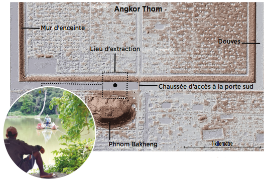 Les conditions écologiques qui régnaient dans la région ont été enregistrées sous forme de dépôts minéraux et végétaux au fond des douves de la cité d'Angkor Thom, la dernière et la plus vaste des citadelles d'Angkor. Les chercheurs y ont extrait plusieurs carottes de sédiments. Ils ont concentré leurs efforts sur l'une d'elles, de 70 cm de long, puis ont daté les couches avec la technique du carbone 14. Ensuite, ils ont analysé leur contenu en pollens, charbon et minéraux.