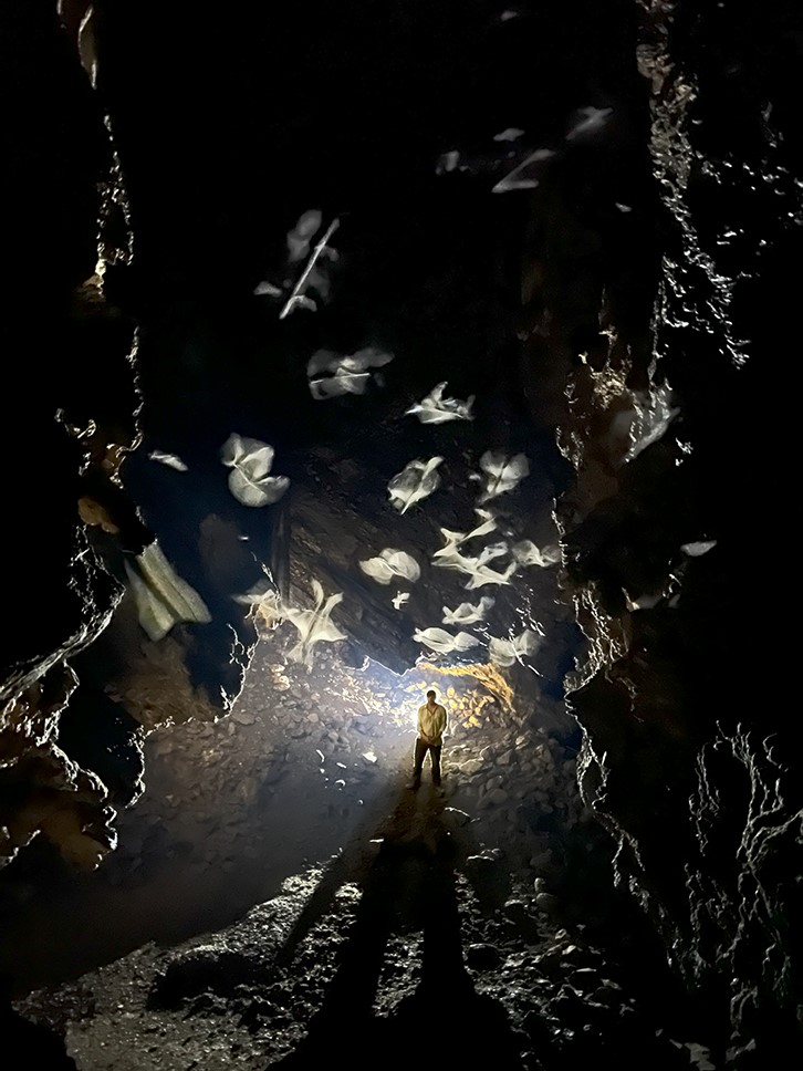 C'était sans compter sur les chauves-souris ! Certaines d'entre elles vont à plus d'un kilomètre sous terre et, lorsqu'elles s'installent dans une galerie, tout y change : on y voit apparaître de fortes variations de températures, de grandes quantités d'eau de condensation, des acides, mais aussi toute une chaîne trophique, qui se nourrit des impressionnantes accumulations de guano qu'elles produisent chaque année, des bactéries, des insectes, des arachnides et des mammifères insectivores ou carnivores.