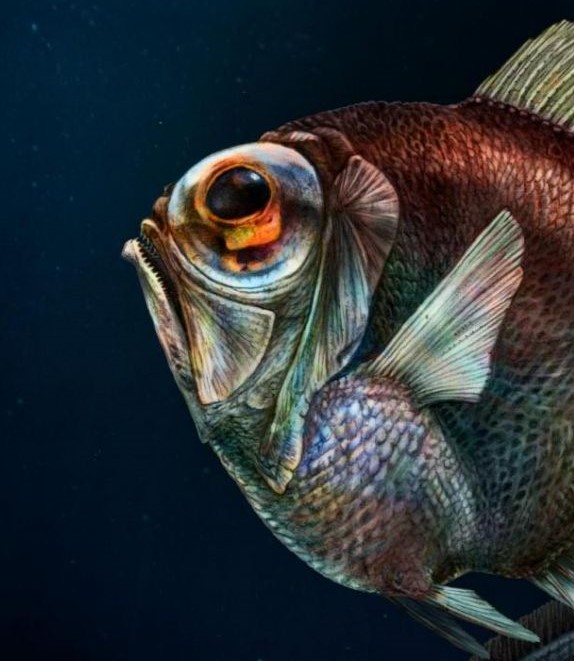Plus on s'enfonce sous la surface des océans, plus la lumière du jour perce difficilement l'eau, si bien qu'à 1 000 m de profondeur, l'obscurité règne. Les créatures qui habitent ces fonds émettent certes leur propre lumière, via la bioluminescence, mais celle-ci se dissipe dans les ténèbres. Il était ainsi admis que, dans de si faibles conditions de luminosité, la vision des couleurs était impossible pour ces animaux et probablement inutile.