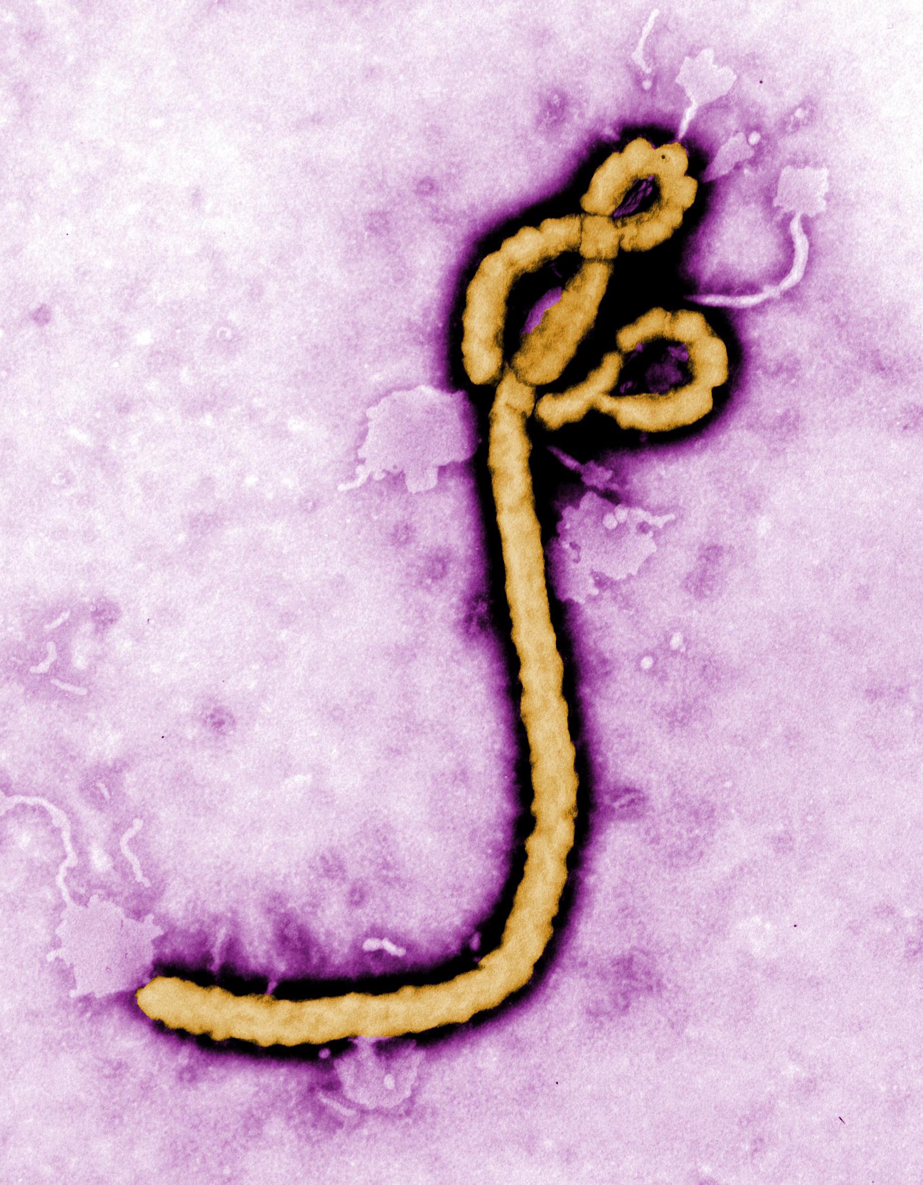 Photo : image colorisée d'une particule virale Ebola © CDC Global
