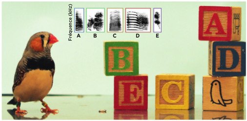 Photo : Cinq des 120 combinaisons, "syllabes", soumises aux diamants mandarins pour leur apprendre le chant © James Sakata