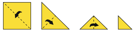Avant la soirée de Noël, dans un club de loisirs, des enfants s'amusent à fabriquer des étoiles. Pour cela, ils partent d'une feuille carrée dorée et la plient en diagonale, une fois, deux fois, trois fois.