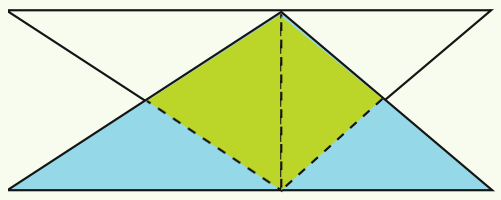 Étape 2. On effectue une découpe selon les médianes issues des sommets des angles droits de ces deux triangles rectangles. On obtient un quadrilatère et deux triangles isocèles. En faisant pivoter ces derniers de 180°, on reconstitue le triangle symétrique.