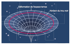 (*) Le théorème de calvitie stipule qu'un trou noir est entièrement décrit par trois paramètres seulement (masse, moment angulaire et charge électrique).