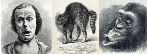 Ces gravures montrant des expressions faciales et des postures humaine et animales sont tirées de l'ouvage de Charles Darwin L'expression des émotions chez l'homme et les animaux (1872). © SPL/Cosmos
