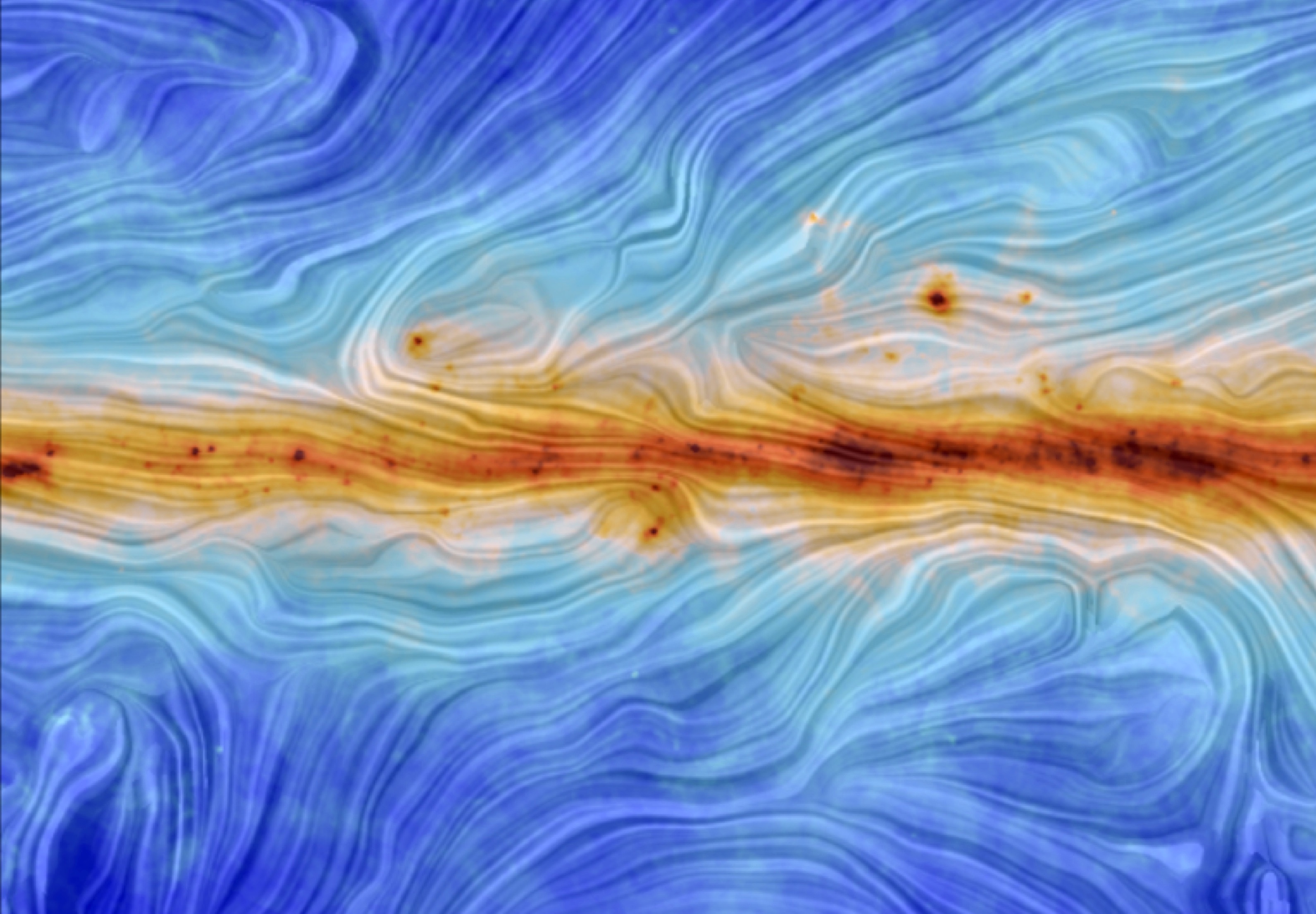 La meilleure carte du champ magnétique de notre Galaxie a été obtenue par un satellite prévu pour étudier... le Big Bang. Un sous-produit inattendu, mais remarquable, du satellite européen Planck qui, après avoir enregistré ses données entre 2009 et 2012, a permis de dresser une carte complète du ciel dans le domaine millimétrique (*). Un patient travail statistique sur les données a révélé de spectaculaires cartes du ciel à ces longueurs d'onde et fait ressortir la direction du champ magnétique sur tout le ciel.