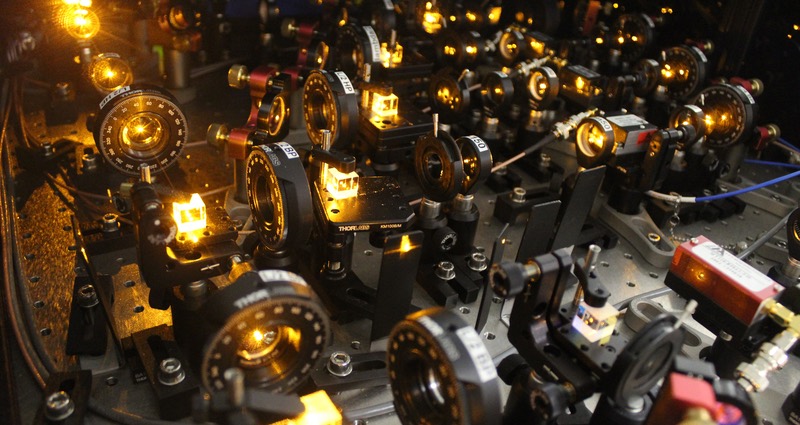 À petite échelle, la nature est décrite par la théorie quantique. La particularité d'un objet quantique, qu'il s'agisse d'un électron, d'un photon ou d'un atome, est qu'il peut se trouver dans un état de superposition quantique. Cela signifie que cette entité quantique combine deux états, par exemple deux positions distinctes dans l'espace ou deux orientations du spin d'une particule (son moment cinétique intrinsèque, une caractéristique quantique de la particule). Plusieurs objets quantiques peuvent être très fortement corrélés : on parle alors d'intrication. Superposition et intrication sont d'ailleurs au coeur des travaux qui ont récemment valu le prix Nobel de physique au Français Alain Aspect.
