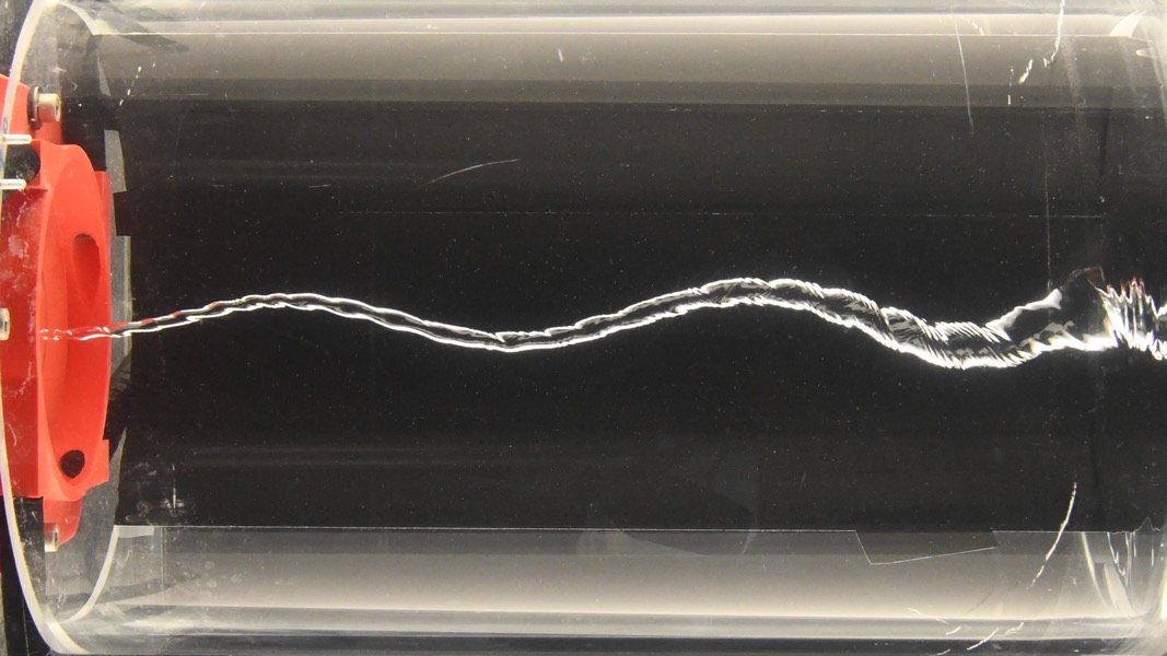 Lorsqu’un fluide tourbillonne, la manière dont il tourne – sa vorticité – ne se répartit pas de manière diffuse: elle se concentre le long de lignes fines, les vortex. Ces tourbillons, omniprésents dans la nature comme dans les systèmes industriels, ne sont pas figés. Ils peuvent vibrer, onduler, se déformer. Dès 1880, le physicien britannique Lord Kelvin avait prédit l’existence d’ondes se propageant le long de ces tourbillons. Pourtant, plus d’un siècle plus tard, ces ondes de Kelvin demeurent largement insaisissables sur le plan expérimental. C’est ce défi d’observations quantitatives que nous avons relevé. Grâce à un dispositif expérimental et un important travail sur l’analyse de données, nous sommes parvenus nous seulement à observer ces ondes de manière contrôlée, mais aussi à les caractériser.
