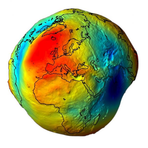 Pour des études du champ de gravité terrestre à l'échelle globale, des gradiomètres (mesurant la dérivée spatiale du champ de pesanteur) à atomes froids, embarquables dans des satellites, sont actuellement en phase de conception par les laboratoires et les agences spatiales. Grâce à leur meilleure stabilité intrinsèque en comparaison des technologies utilisées jusqu'à présent (des gradiomètres électrostatiques), ils pourraient permettre d'affiner les mesures de la surface équipotentielle de pesanteur, le géoïde, qui représente la forme théorique de la Terre si elle était recouverte d'océans au repos et façonnée uniquement par la gravité. Cette surface de référence est utile pour de nombreuses études scientifiques, en particulier pour déterminer le niveau moyen des océans ou l'épaisseur des glaces, et donc pour comprendre le changement climatique et ses impacts.