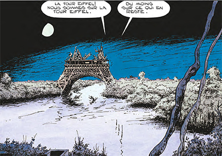 La science-fiction n'a pourtant pas hésité à faire subir les pires outrages aux métropoles modernes bâties selon des techniques de construction qui ont fait leurs preuves pendant des millénaires. Ainsi, comme New York dans A.I. Intelligence Artificielle (2001), de Steven Spielberg, Paris sera à son tour englouti par la mer – hypothèse que Camille Flammarion avait déjà envisagée dans son essai La Fin du monde (1893). Dans la bande dessinée d'Éric Adam, Didier Convard et Han Neck Han, Panthéon, le tombeau des dieux endormis (2012), on voit néanmoins que, plusieurs siècles après la montée des eaux provoquée par la fonte des pôles, la plupart des bâtiments de la capitale française émergent toujours des flots. Les visions de cette nouvelle Venise battue par les vagues de l'océan global sont très esthétiques mais, si l'on s'en tient à la physique des matériaux, on peut douter de leur réalisme. En effet, l'un des facteurs prédominants pour la dégradation des ouvrages est la présence de l'eau, qui interagit avec les constituants de la pierre comme les sulfures et les sels solubles, et libère des substances potentiellement agressives. Mais, si la seule exposition à la pluie accélère les phénomènes d'érosion, que dire en cas d'immersion complète ? Certaines roches (grès, argile) et pierres artificielles se dissolvent partiellement (1). Pire, les cycles de mouillage (ou humidification) et séchage ont des effets particulièrement nocifs, notamment sur les roches argileuses qui se fissurent, entraînant la ruine des ouvrages dont elles sont constituées (2). Il ne faut donc pas se faire d'illusions : ni dans la réalité ni dans la fiction, la célèbre devise de Paris Fluctuat nec mergitur (« elle est battue par les flots mais ne coule pas ») ne garantit l'avenir posthume de la Ville Lumière.