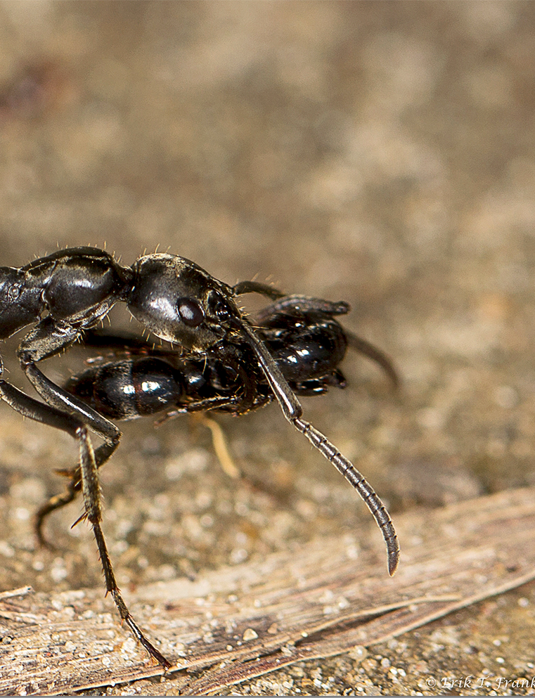 Photo : La fourmi Matabele transporte une blessée vers le nid, où celle-ci aura de grandes chances de se rétablir © Erik T. Frank